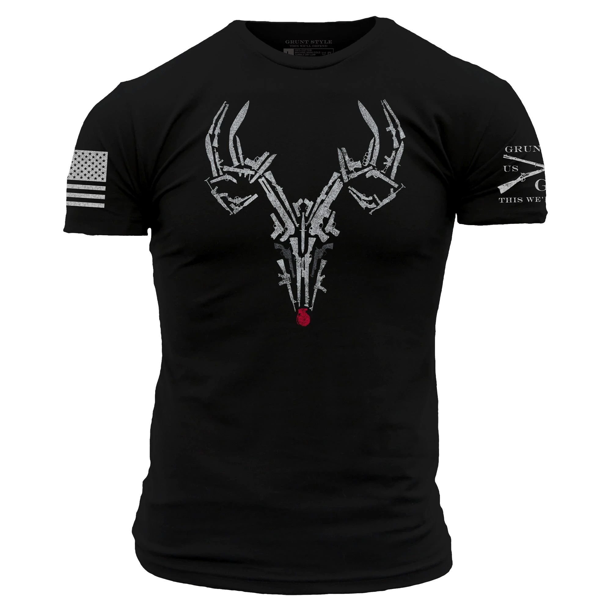 This badass Christmas shirt is a must-have. Featuring a reindeer made out of firearms, it is sure to make a statement this holiday season. Show your love for 2A rights and Rudolph in our 2A rights, Rudolph, and