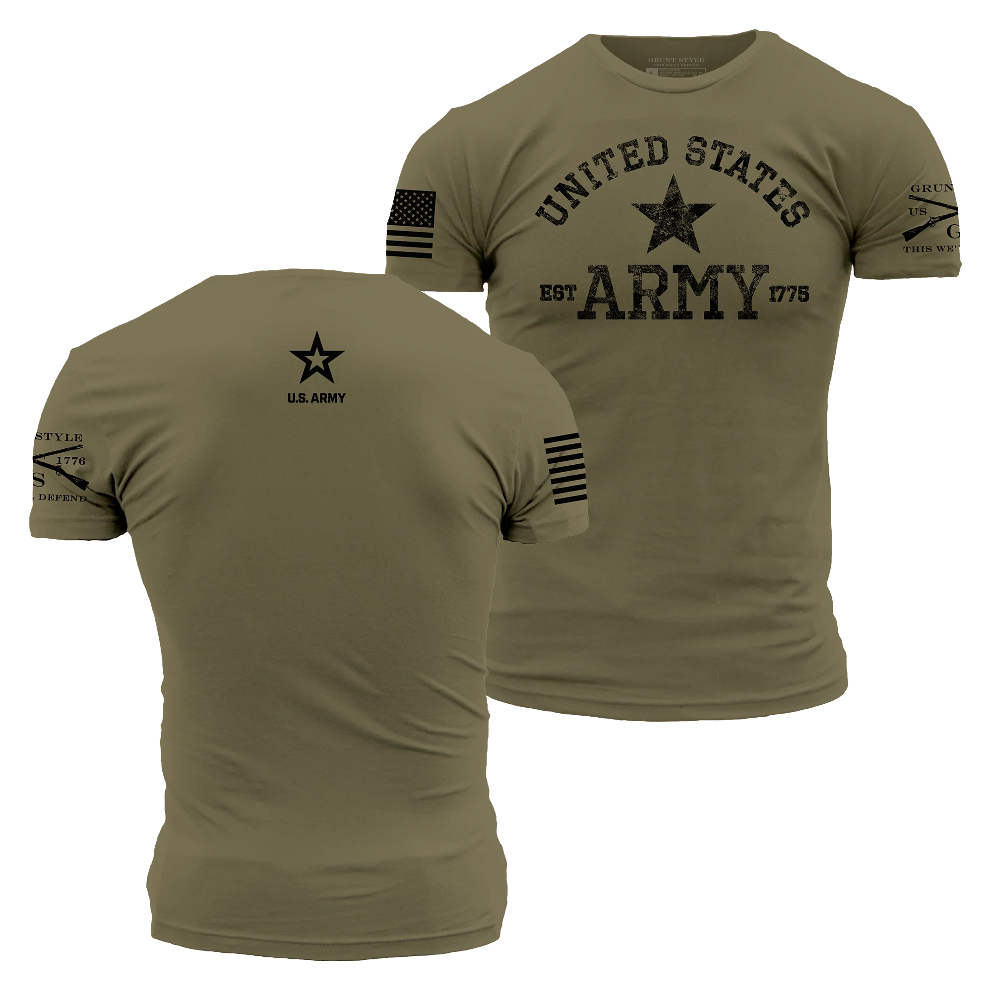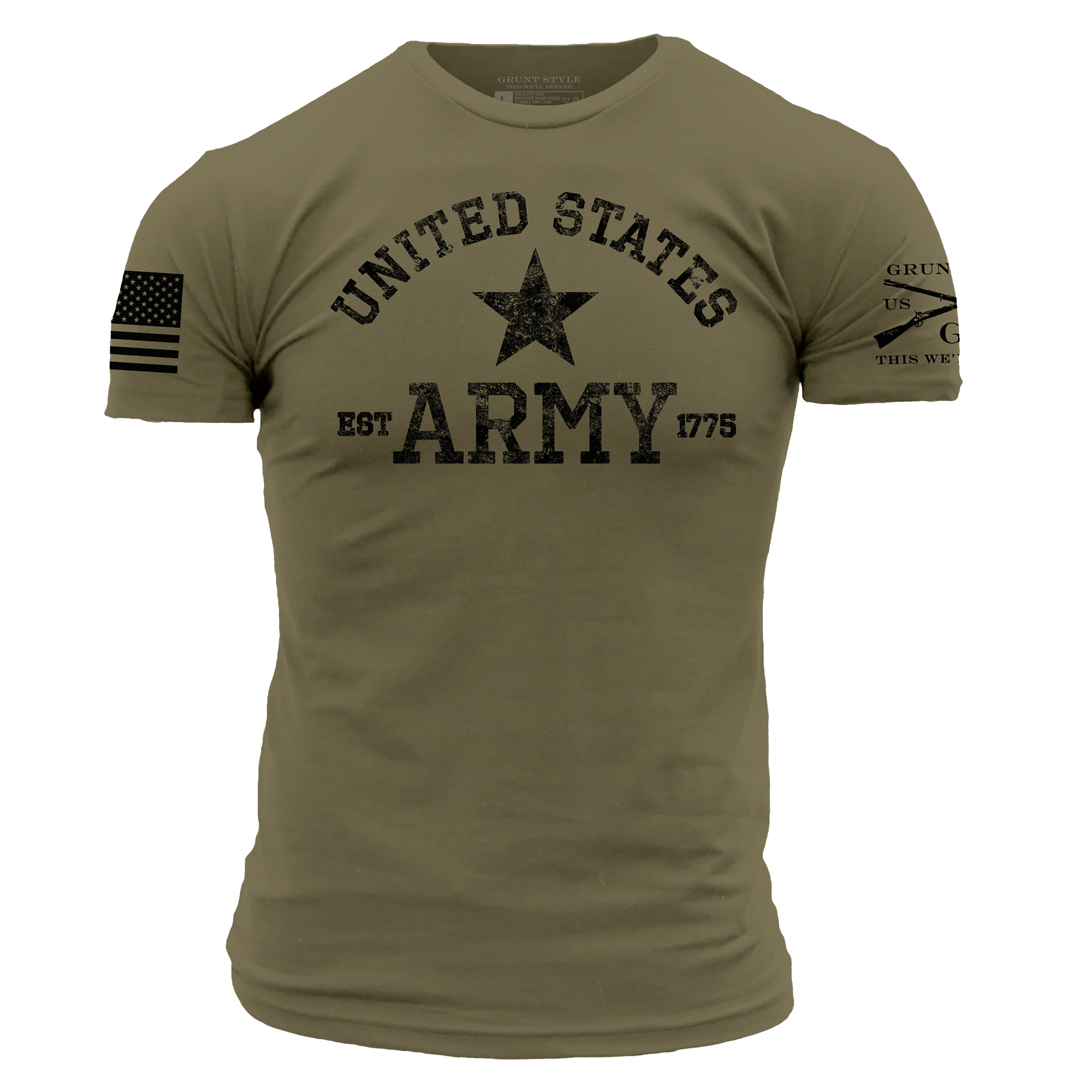 Our Army – Est. 1775 – Military Green Tees are crafted with the following details: