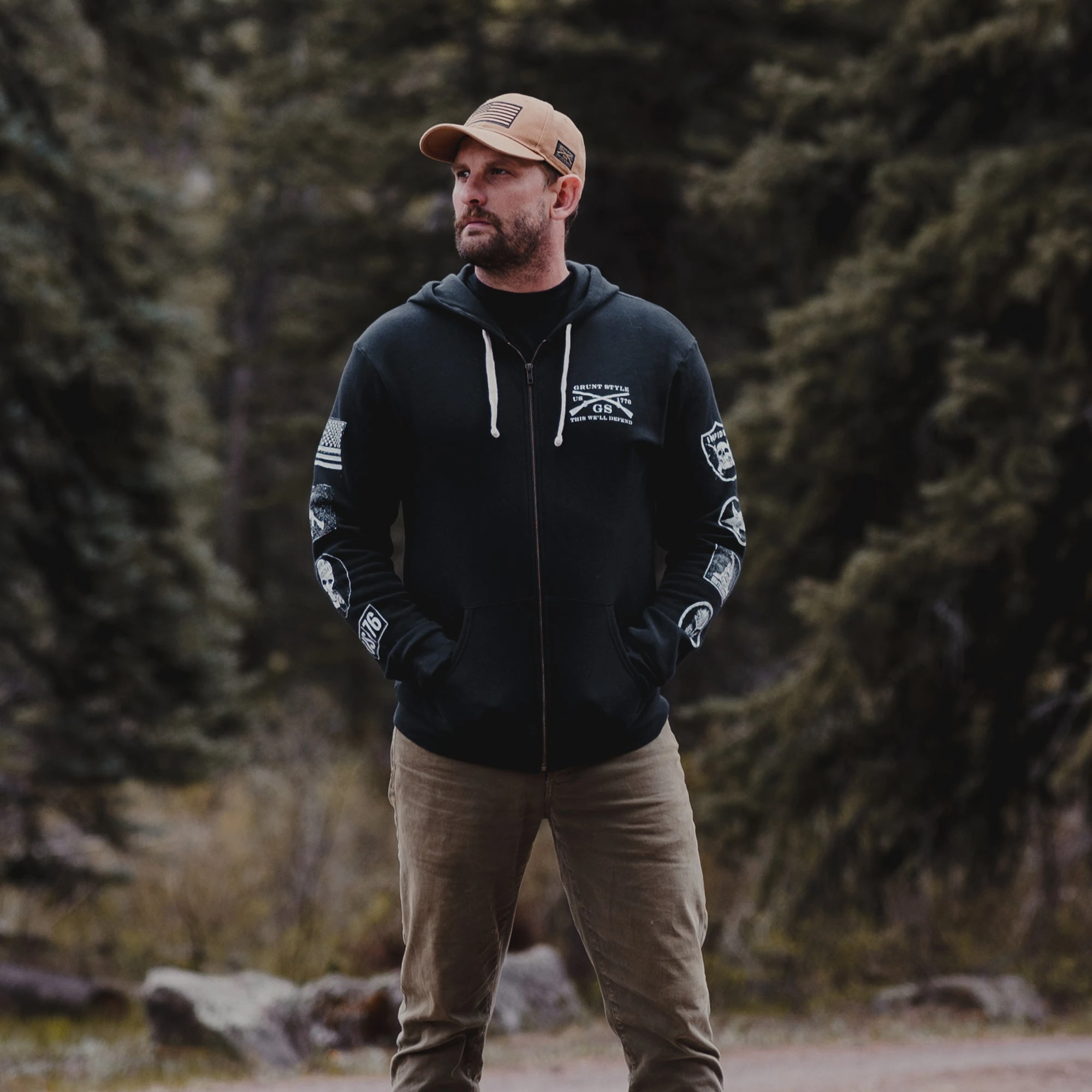 Our Grunt Style Patch Full-Zip Premium Hoodies are crafted with the following details: