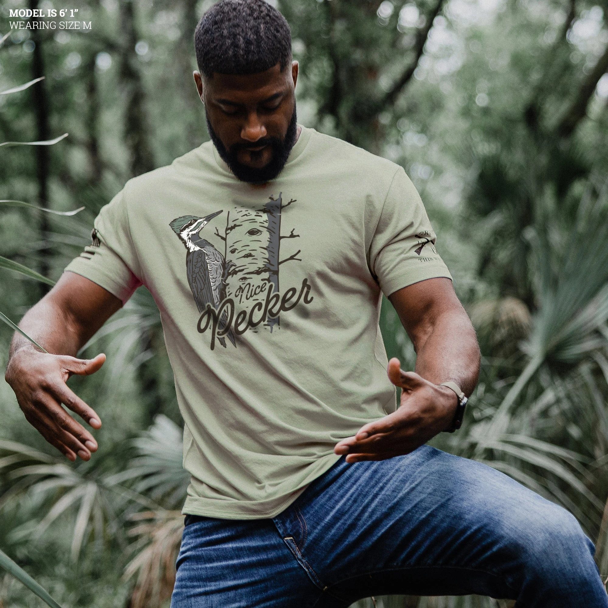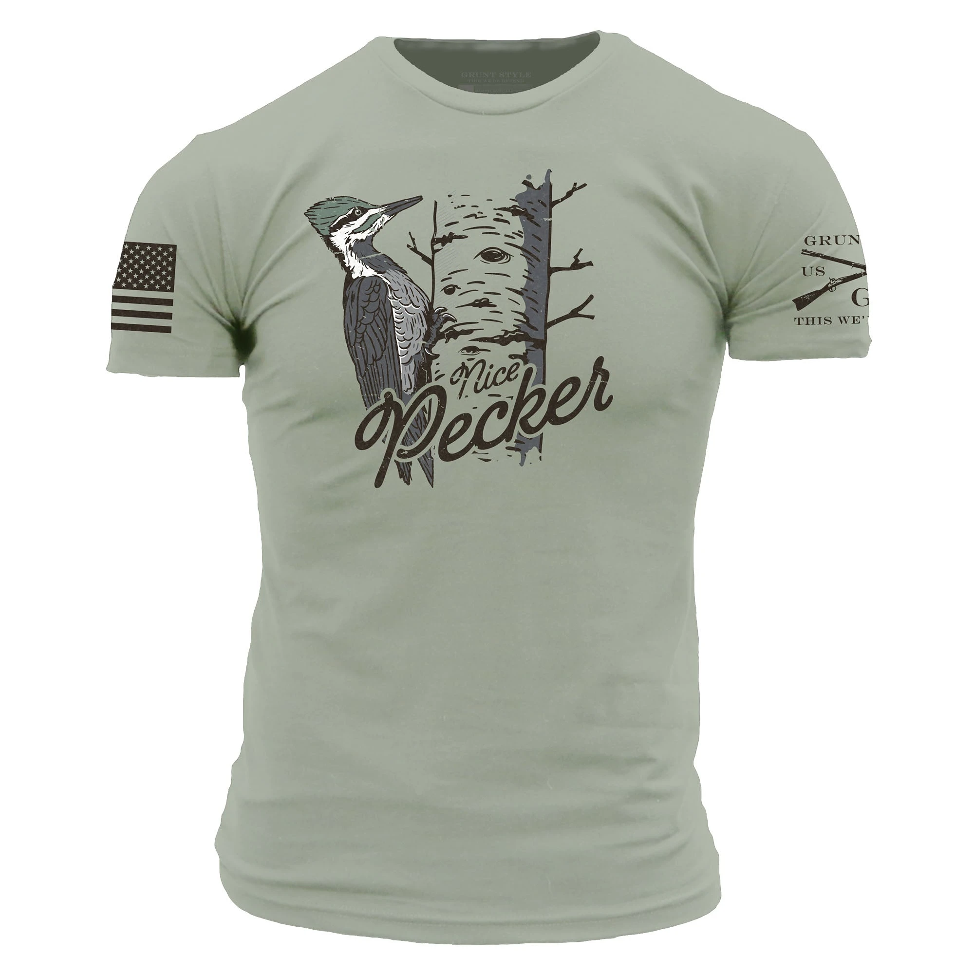 We all know someone who loves to spend hours outdoors. There is nothing quite like being out in the elements, but sometimes you just have to take a much-needed stop. While showing off your love of nature and sense of humor, this Nice Pecker T-Shirt is a perfect addition to any nature-loving patriot’s wardrobe! Crafted with lightweight fabric and a badass sage color, it makes a statement of style.