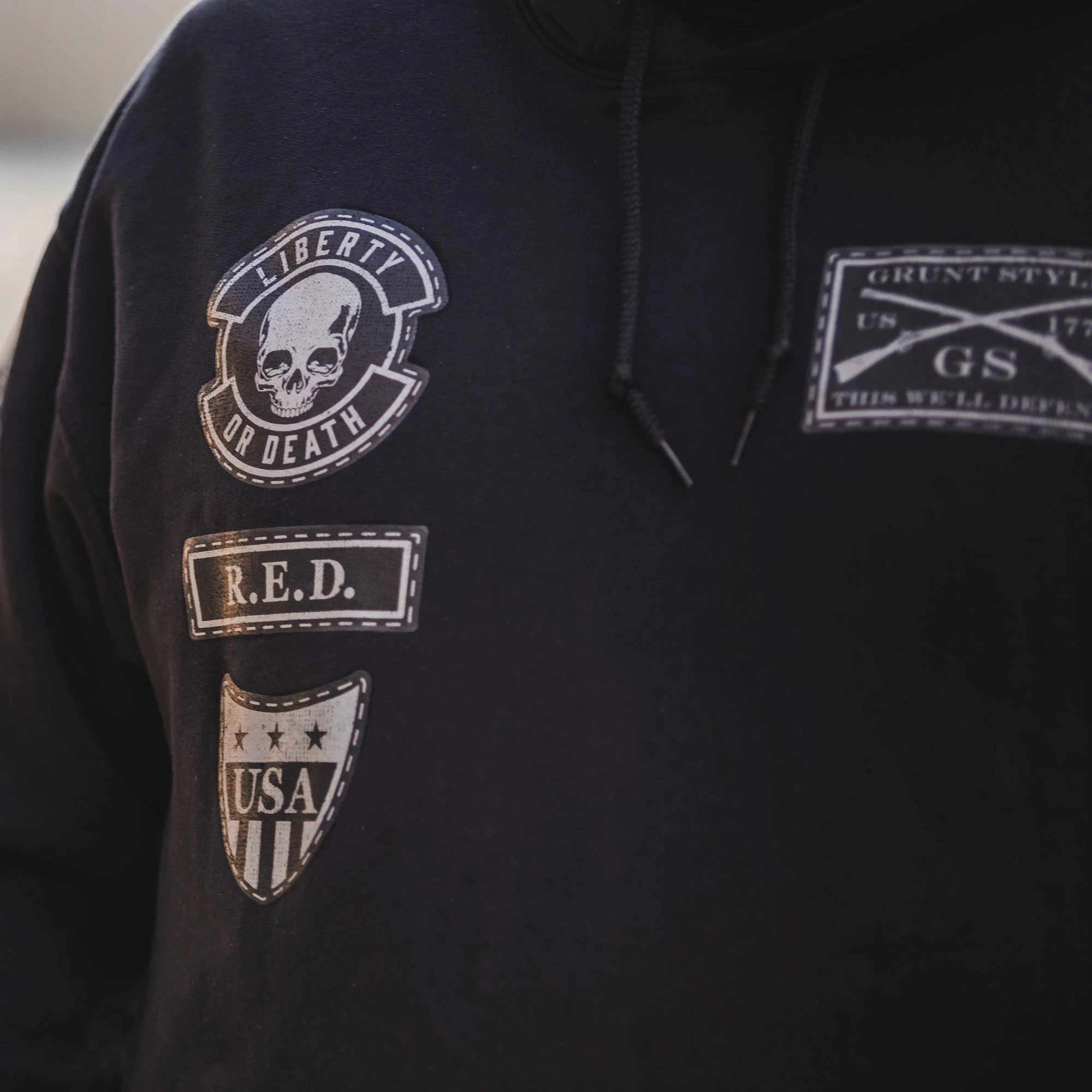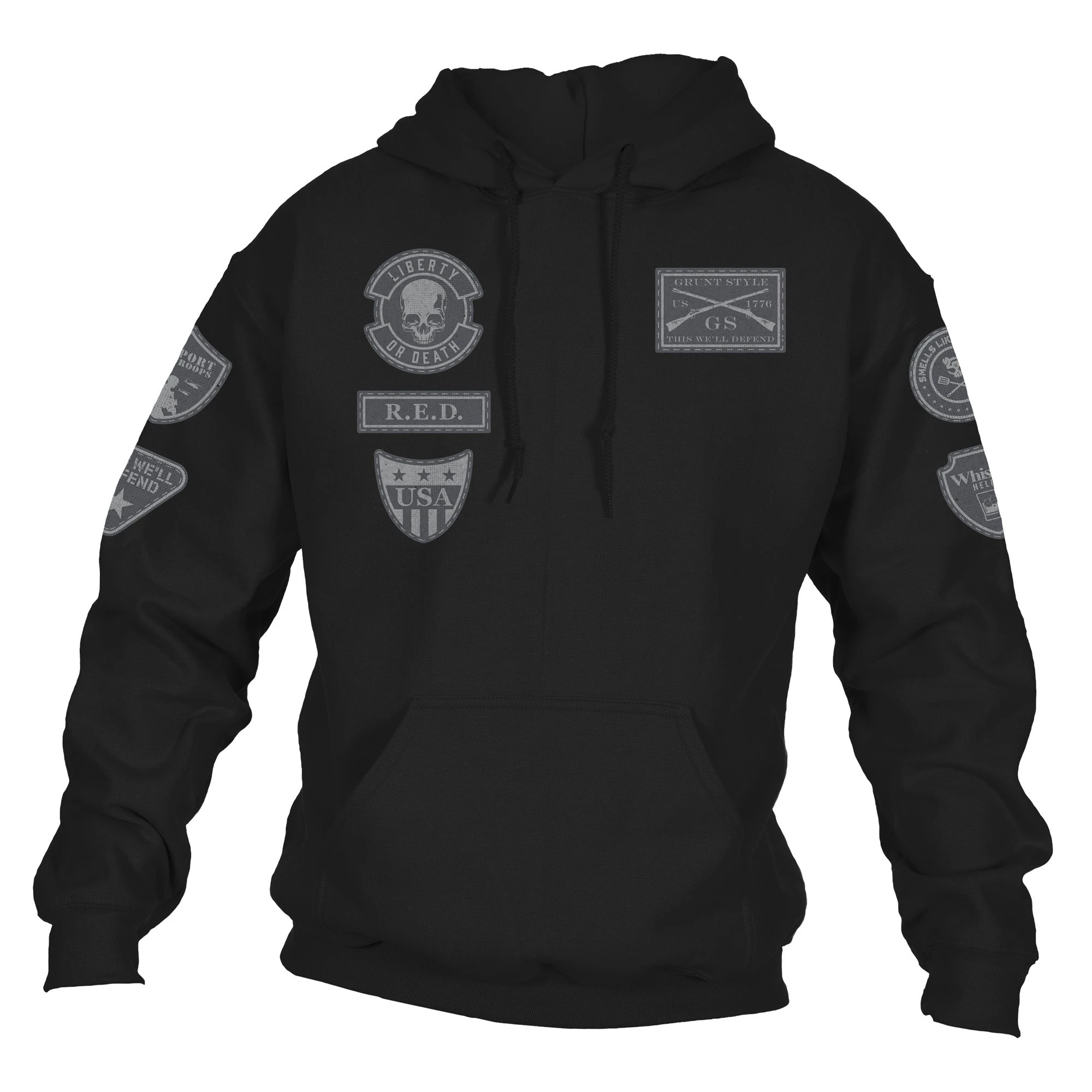 Show off your undying patriotism in our Patriot Patch Hoodie. Featuring all of your favorite Grunt Style designs from the R.E.D. to the American Flag to Supporting the 2nd Amendment, this hoodie displays every true Patriot’s beliefs! Show your true colors today!