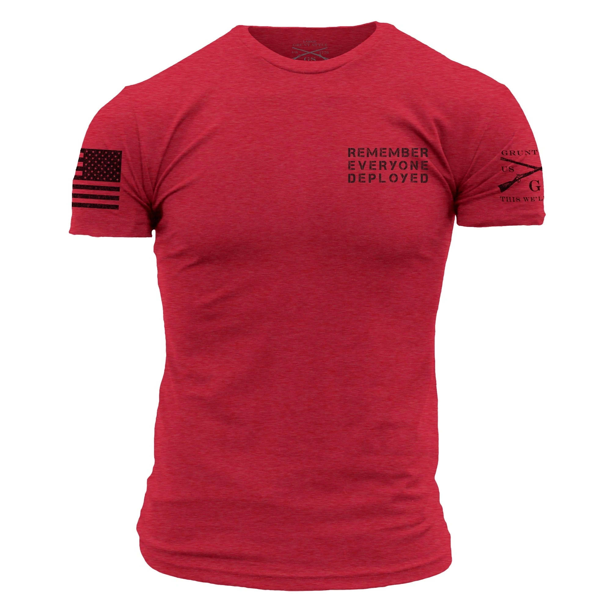 Remember the sacrifices, remember the deployed! Show your support for our military personnel with this R.E.D. All Forces T-Shirt – Red.