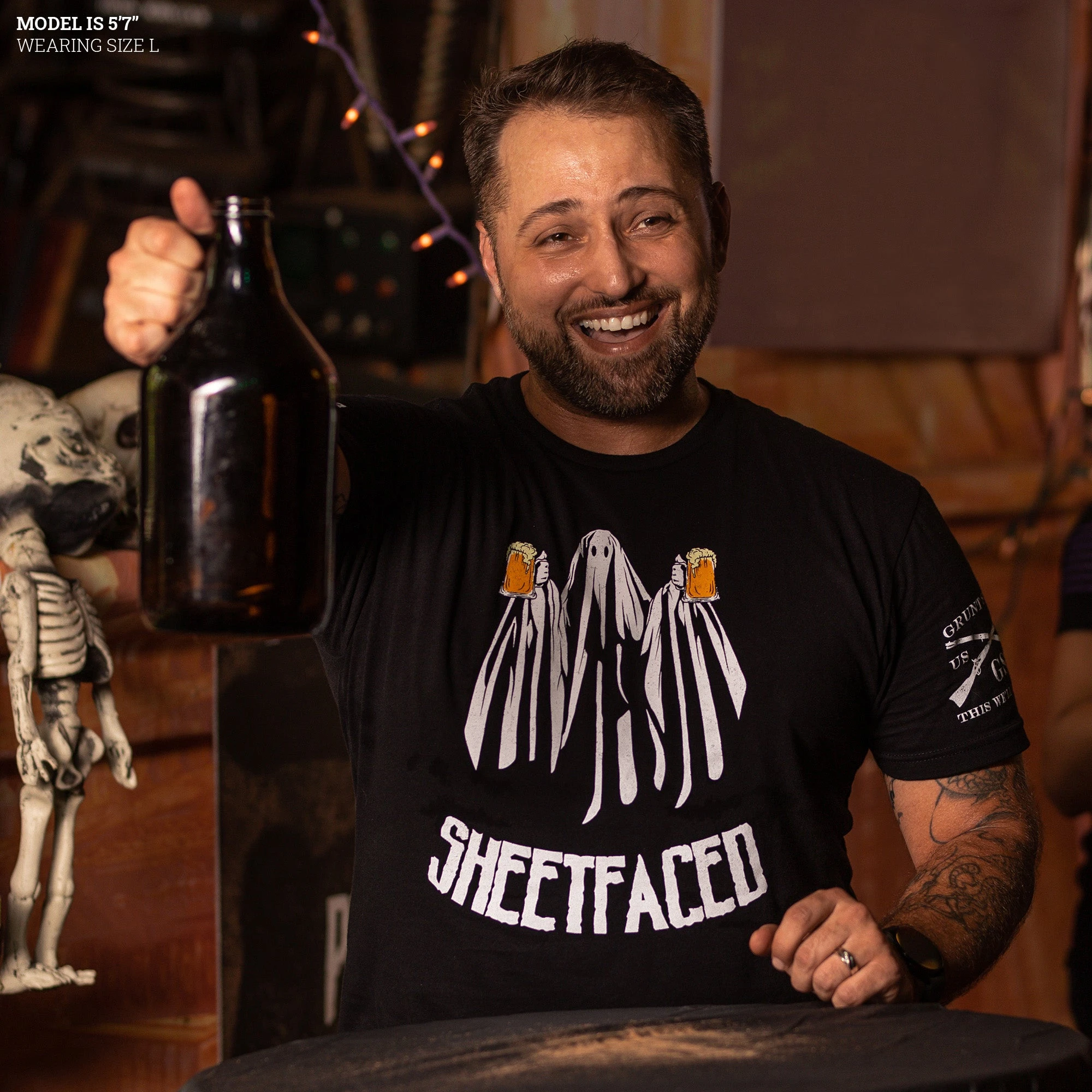 Look spooky in our Sheetfaced T-Shirt! Featuring a Halloween-inspired design, this shirt is perfect for any costume party or night out. Enjoy being the scary center of attention with its iconic Sheetfaced designs. So drink up and add it to your wardrobe today and show off your Halloween spirit!