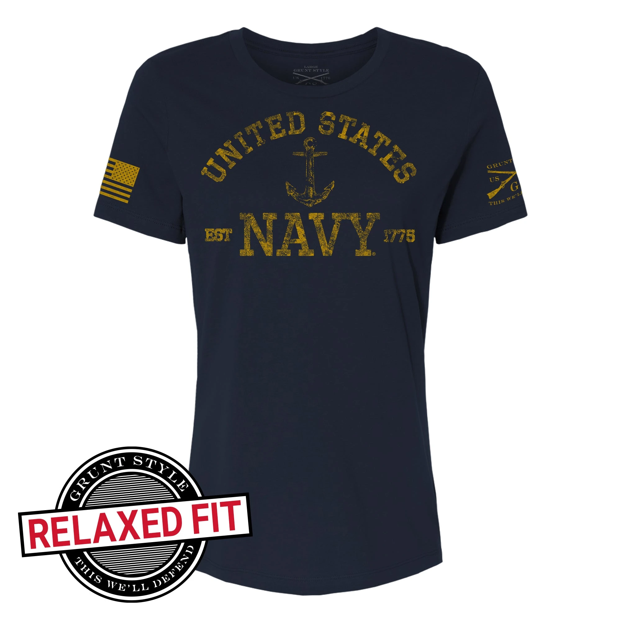 Our USN – Women’s Est. 1775 – Navy Tees are crafted with the following details: