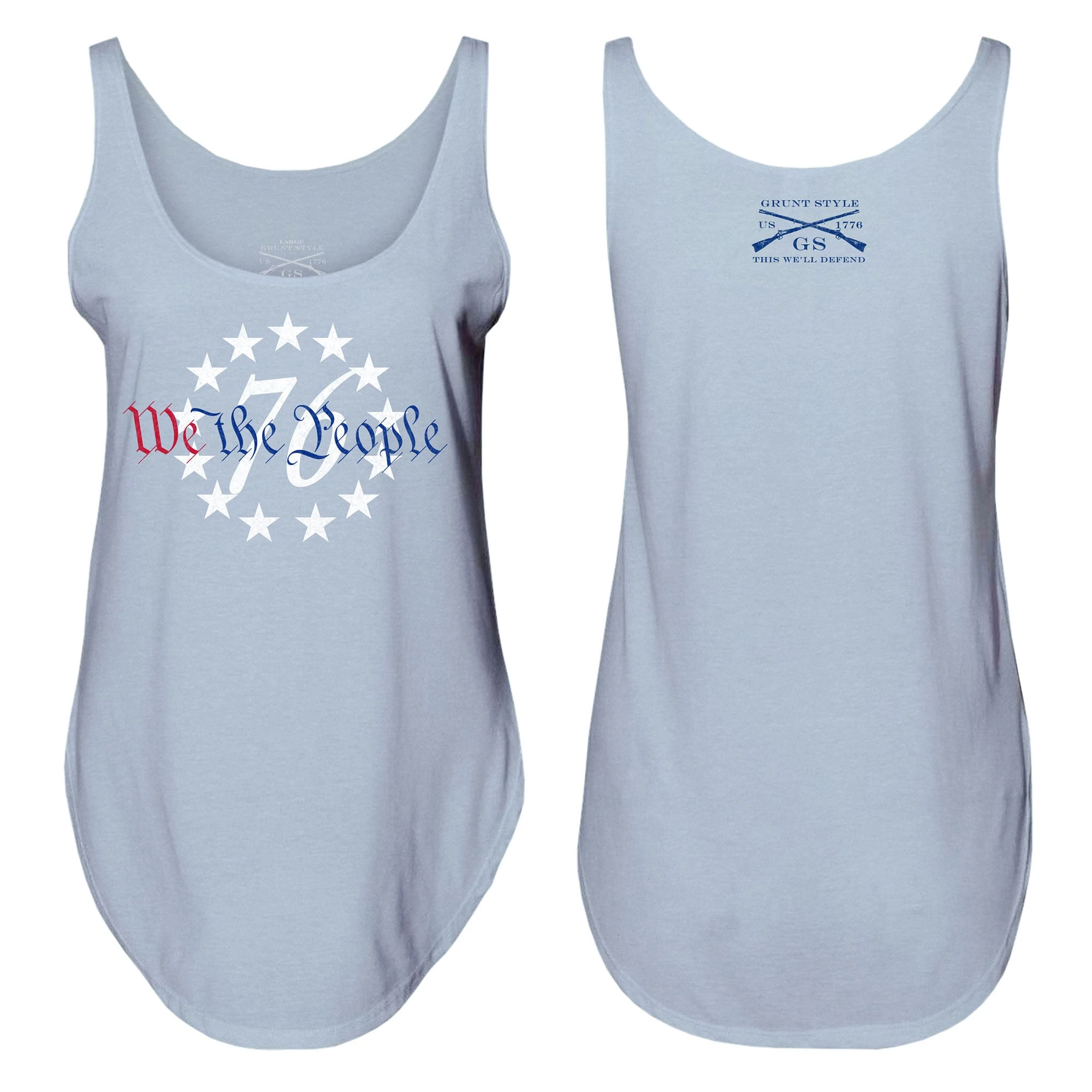 Grunt Style is your one-stop for all American-themed shirts and apparel. Know your stuff about the history of the great USA and get this 76 We The People Flowy Tank Top for Women today!