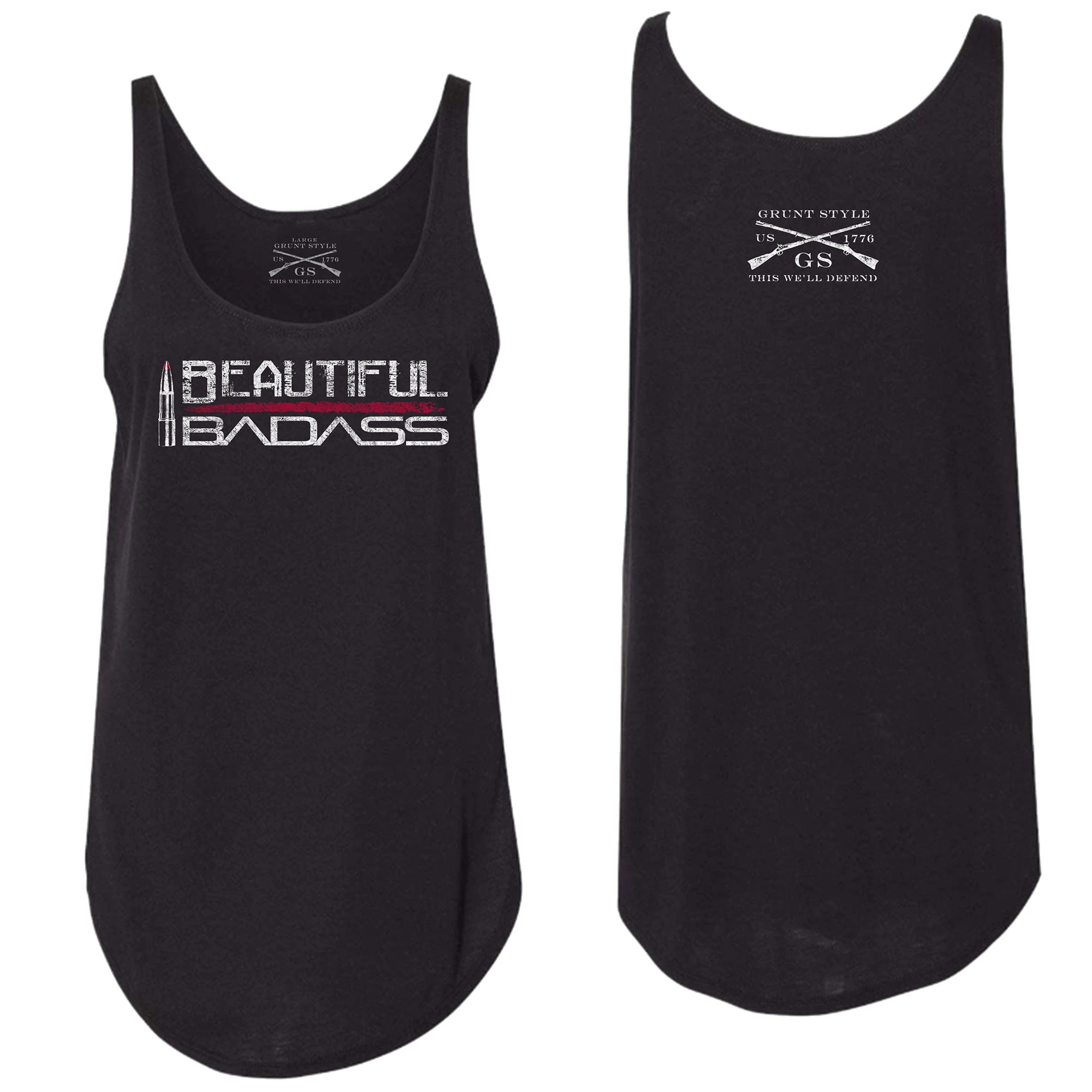 Whether you’re hitting the beach or just hanging out with friends, this tank for women is a must-have for your summer wardrobe. So don’t wait any longer, order your Beautiful Badass Women’s Flowy Tank today!
