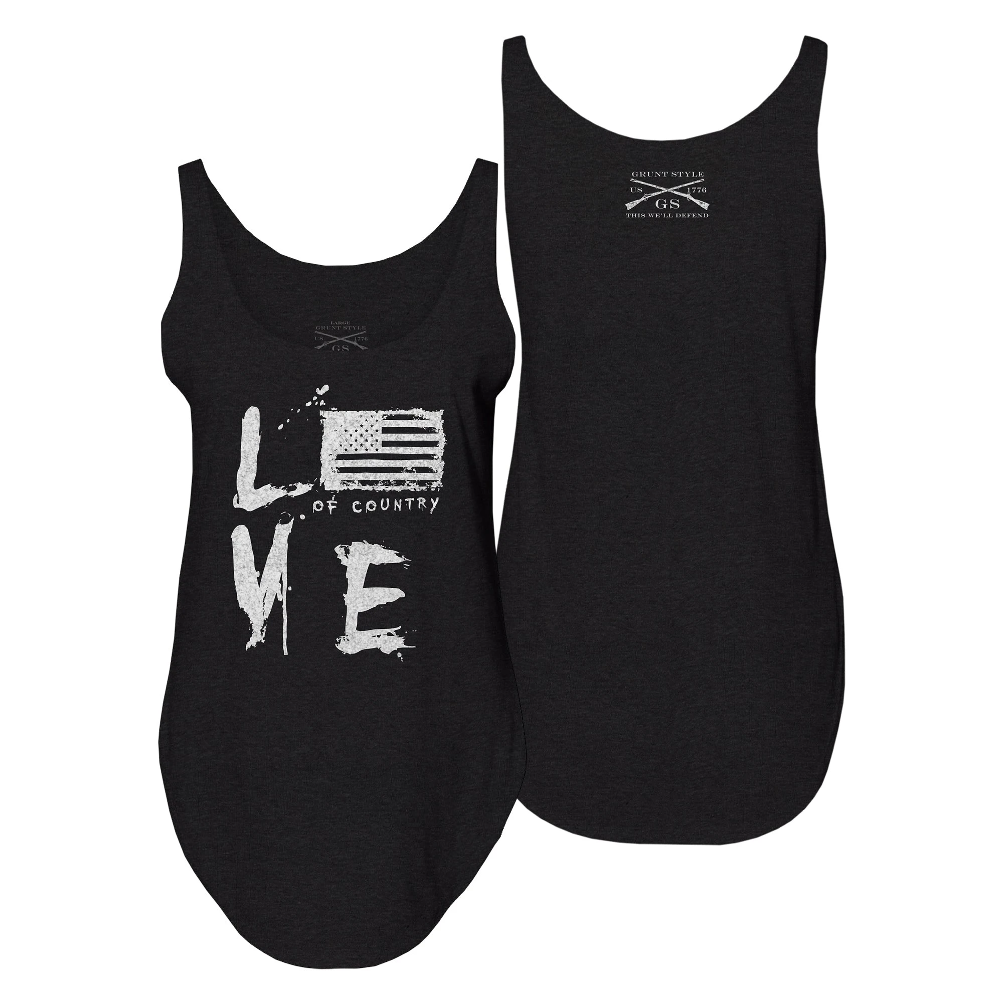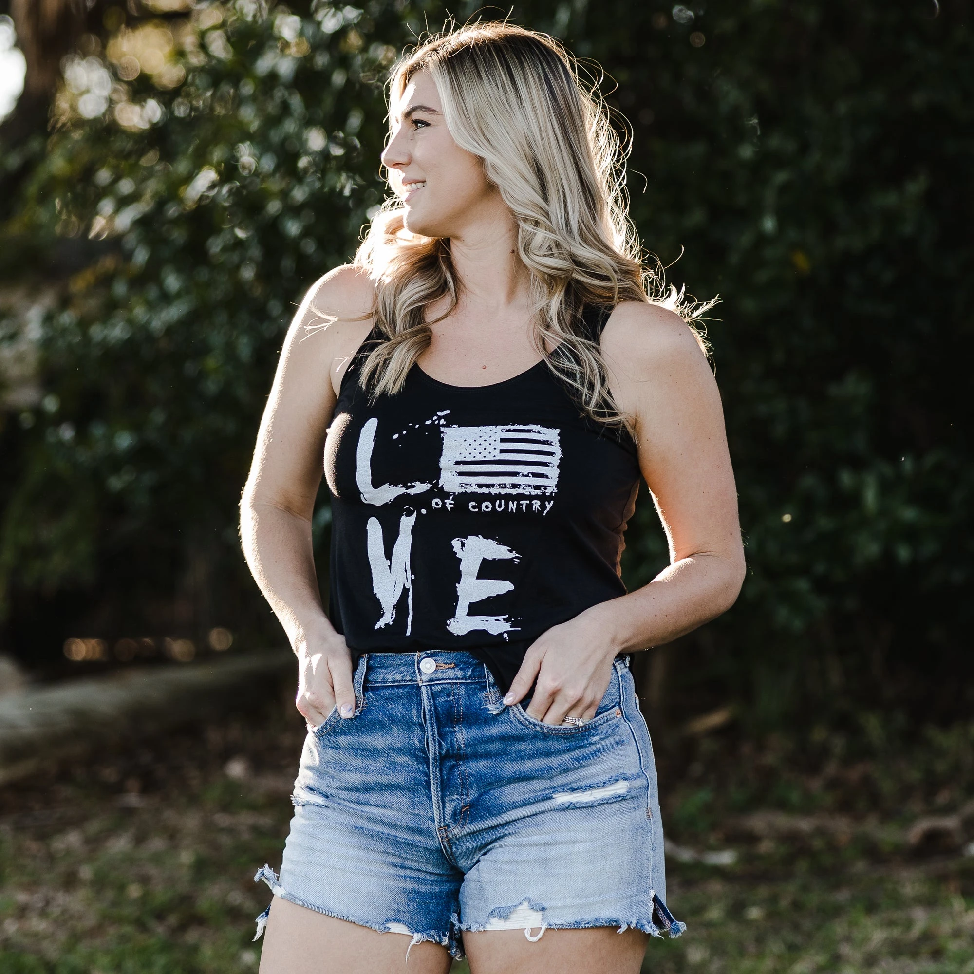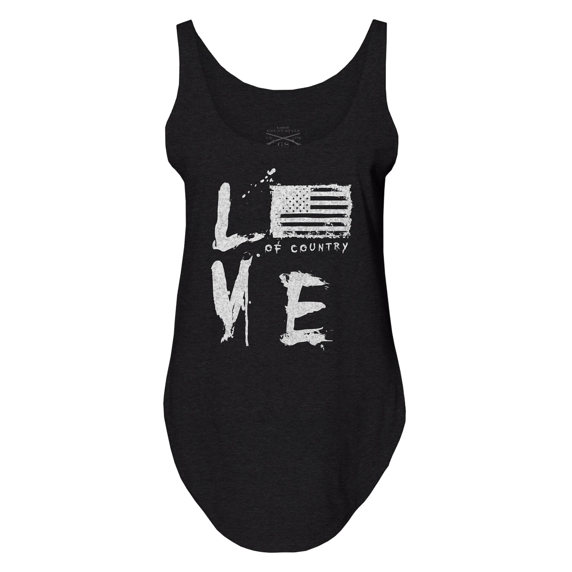 This tank top has the word “patriotic” written all over it! Celebrate your deep love for the United States of America by purchasing this Love of Country tank top for women, which features the great American Flag, today!