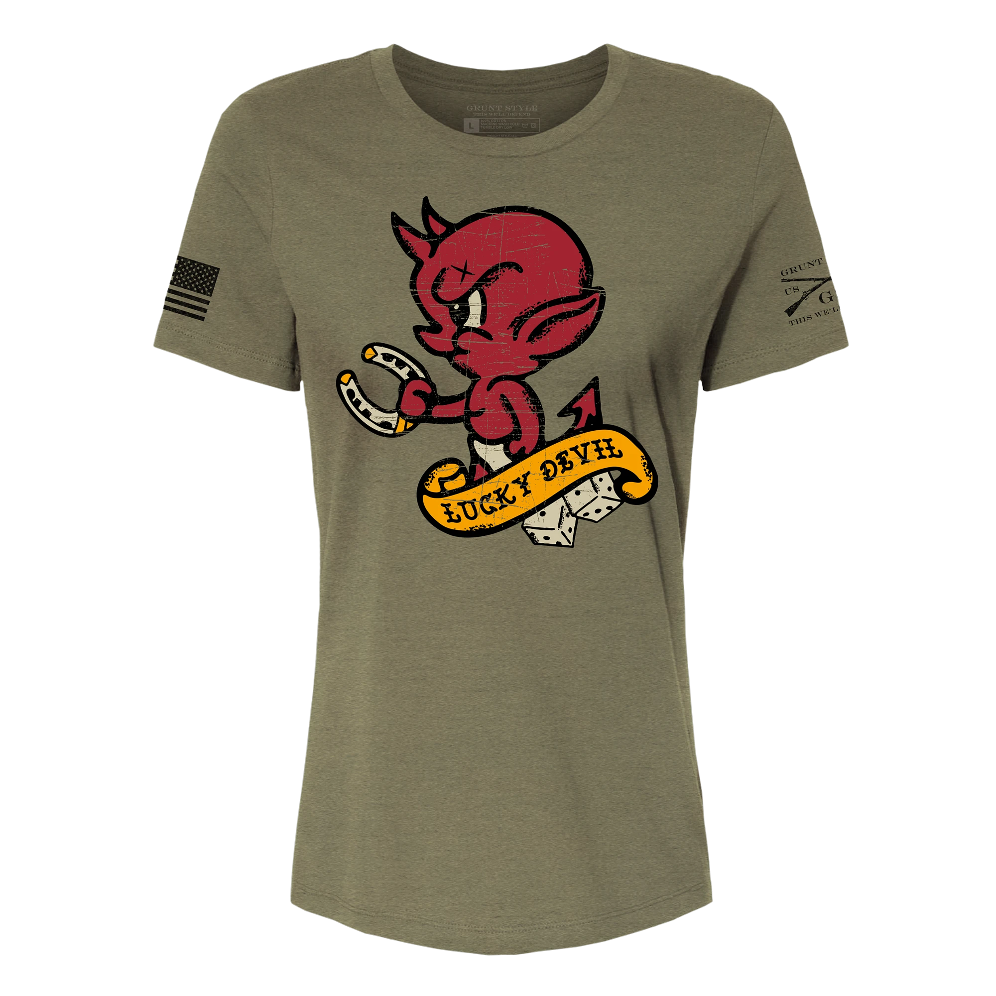 Feel the rush of freedom with this Women’s Lucky Devil Relaxed Fit t-shirt. Boasting a devil, lucky horseshoe, and vintage tattoo graphic, you’ll make a lasting impression and demonstrate your willingness to take a risk. Seize the day and let your lucky streak begin!