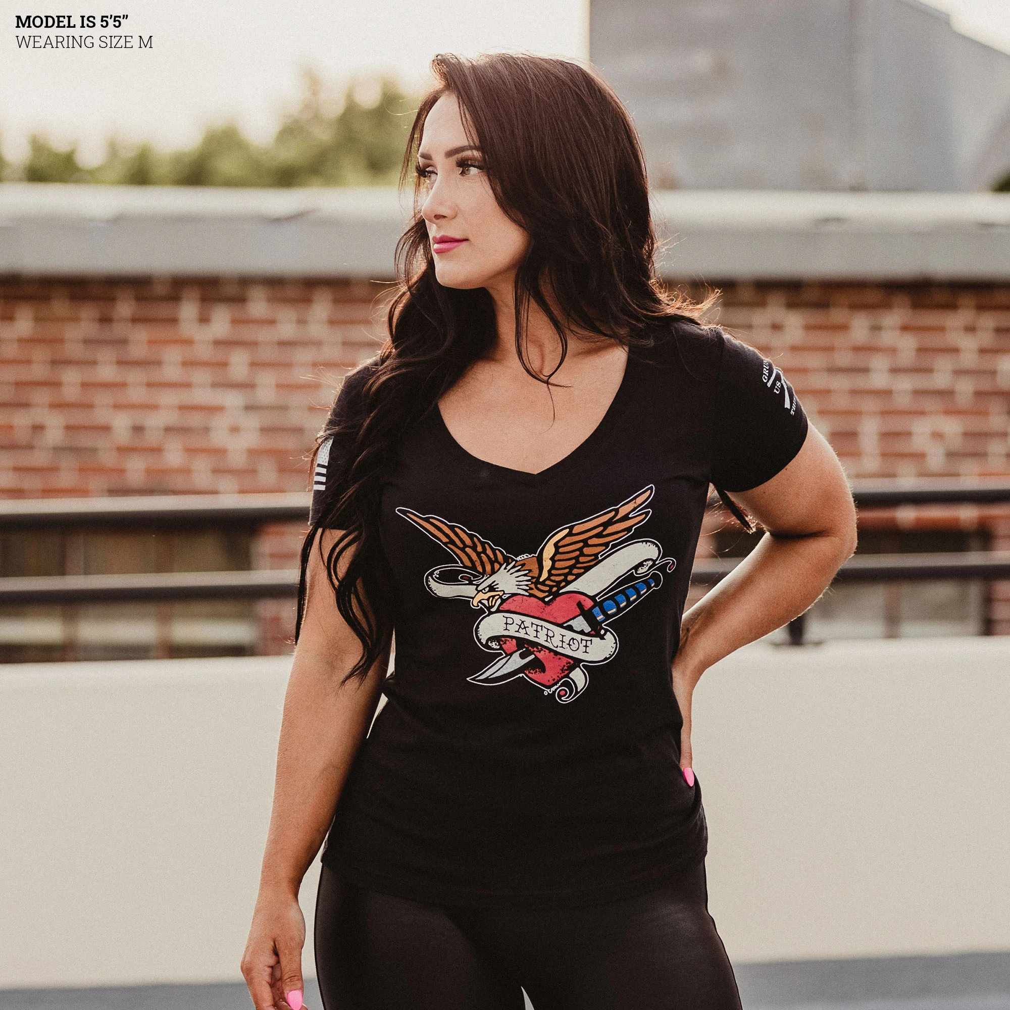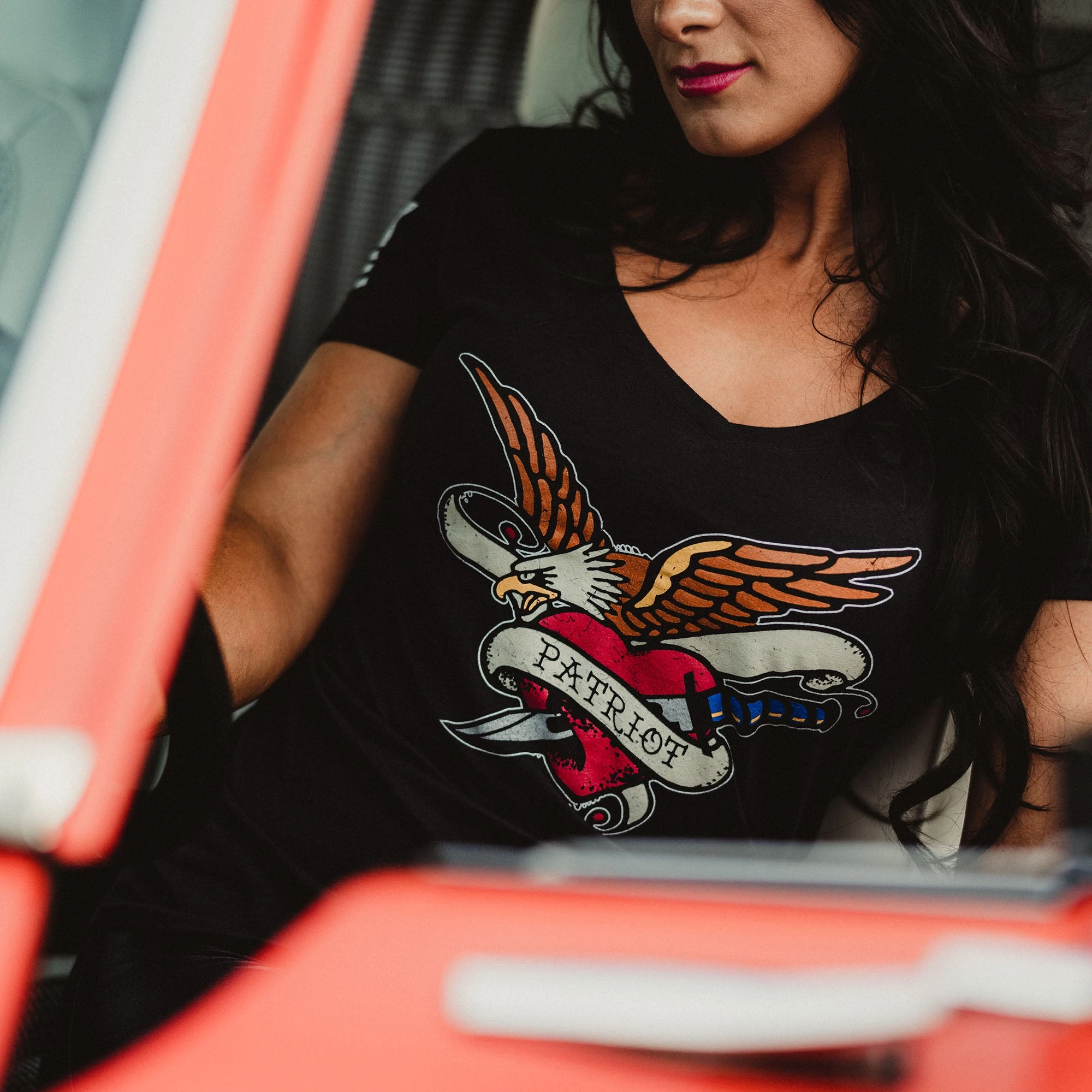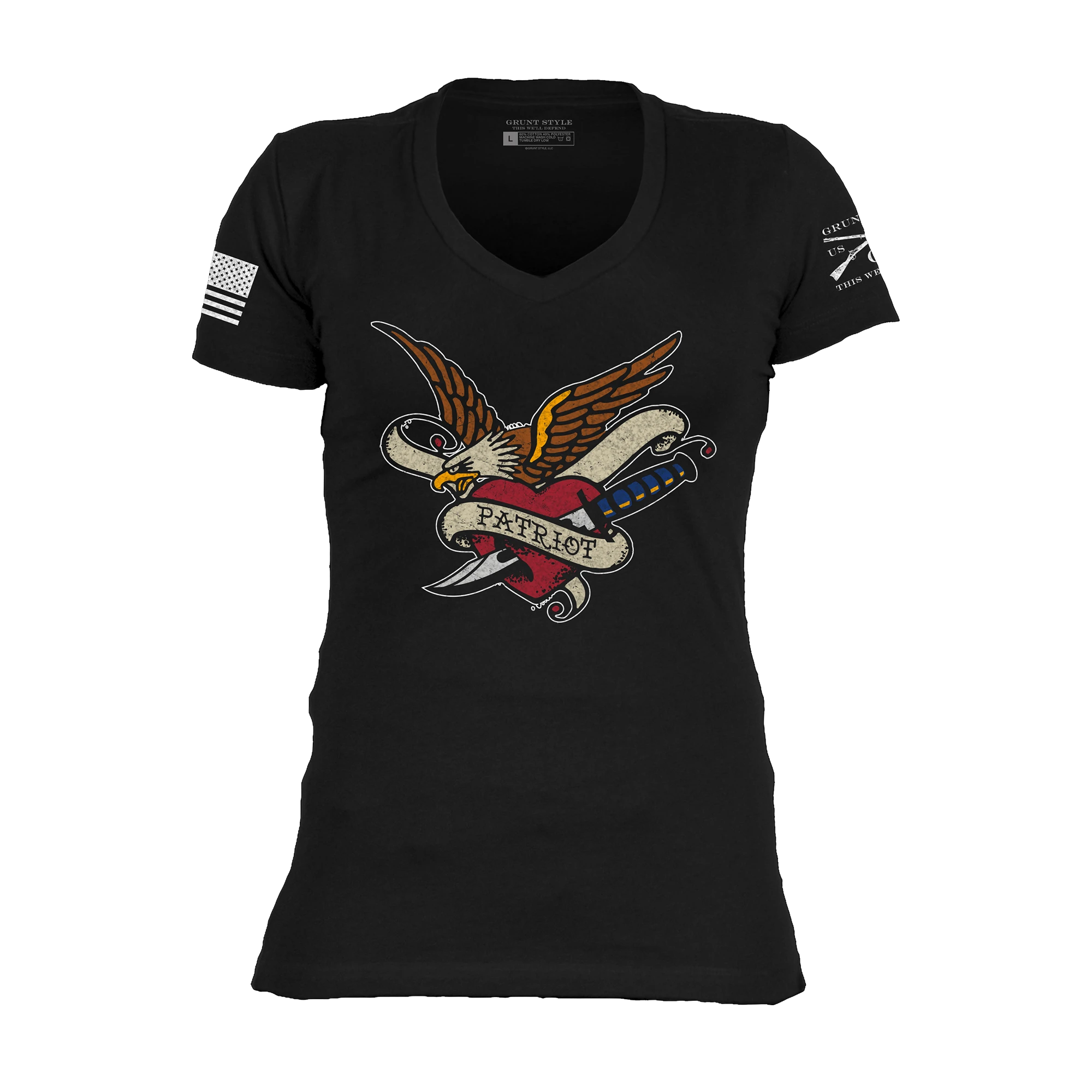 A patriotic shirt for women that is designed for the true American Patriot! Show your undying love of the stars and stripes with this Women’s Patriot Ink V-Neck. It features a classic vintage tattoo graphic displaying a bald eagle and your love for America. This stylish and comfortable v-neck will have you looking and feeling great! Show your patriotism in style in patriotic clothes for women!